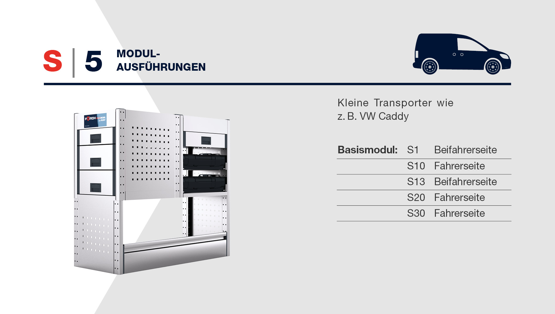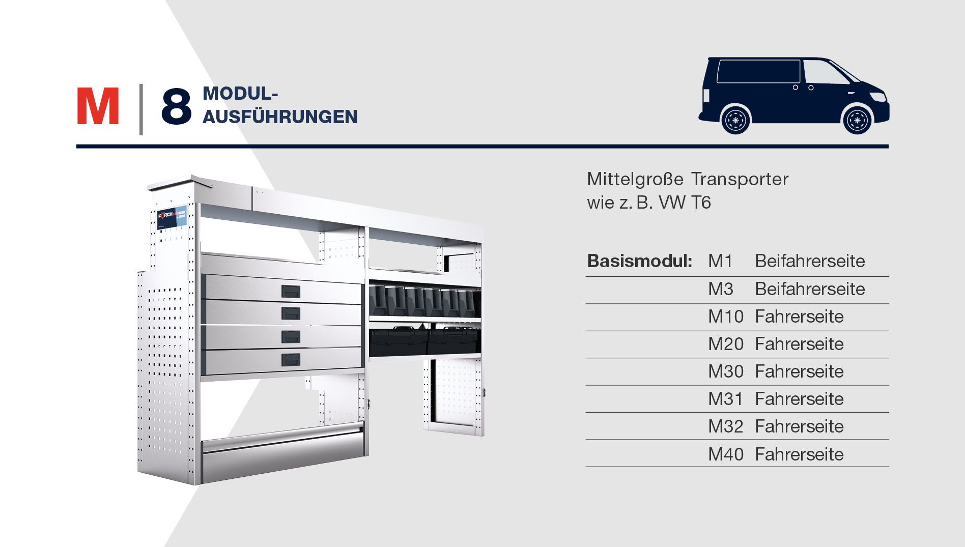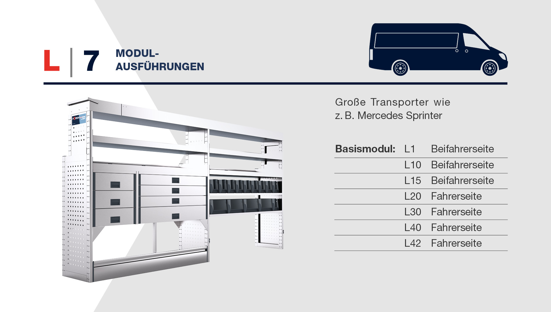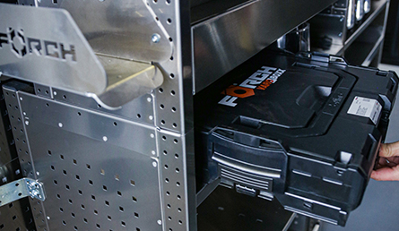 Tack vare de kraftfulla fullutdragsskenorna kan lådorna bära mellan 40 och 80 kg, beroende på version, och kan fyllas flexibelt med halkskyddsmattor, plastlådor eller skumplastinsatser.